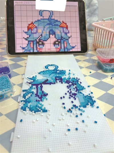 有艺术学领域的学者认为,拼豆之所以能在都市人群中快速流行,核心原因在于它上手简单、价格也比较亲民。与传统手工艺强调“从零开始”的创作不同,拼豆具有明显的模块化特点,容易入门、方便组合,更贴合当代年轻人既追求效率、又向往慢生活的节奏。这种创作形式与乐高、十字绣等手工活动有相似之处,都是通过拼贴、组装完成作品。它不只是一种休闲方式,更折射出一种现代生活哲学:在模块化、易操作的框架内,人们能在短时间内看到动手创作的成果,从而获得持续的正向激励。