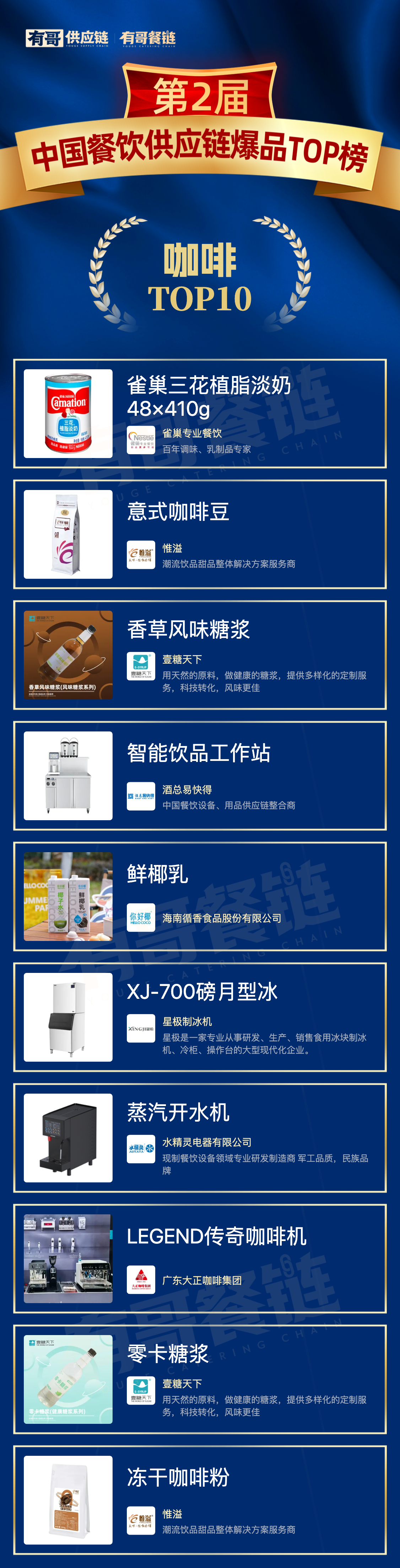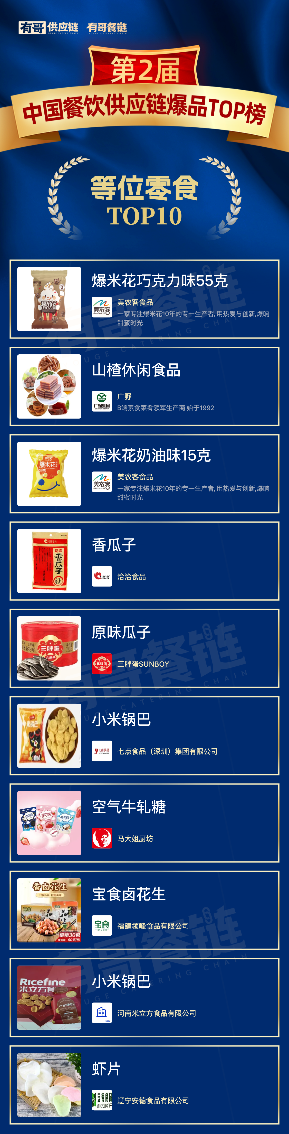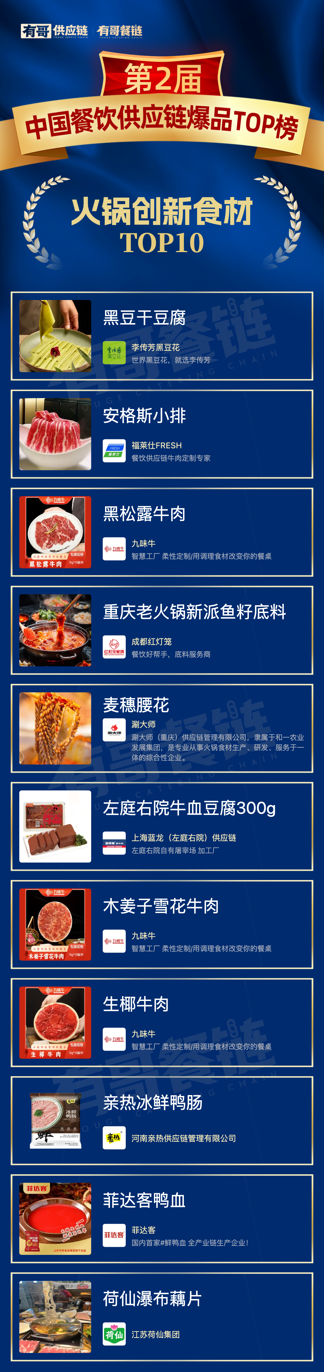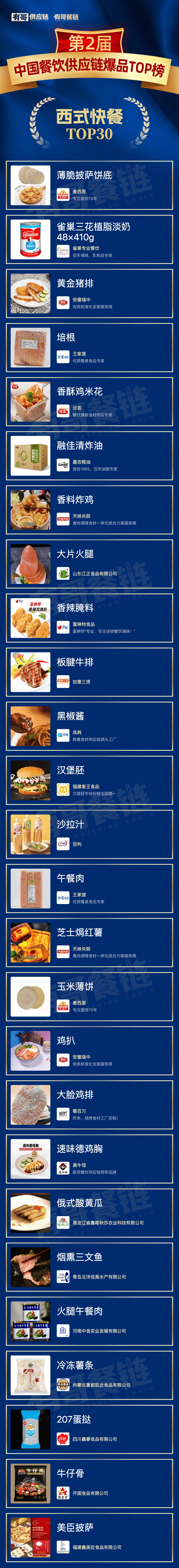 在此背景下,【第二届中国餐饮供应链爆品TOP榜】应运而生,以更严谨的方法论设计、更广泛的行业覆盖与更权威的评审阵容,致力于回答当前行业最迫切的三大命题: