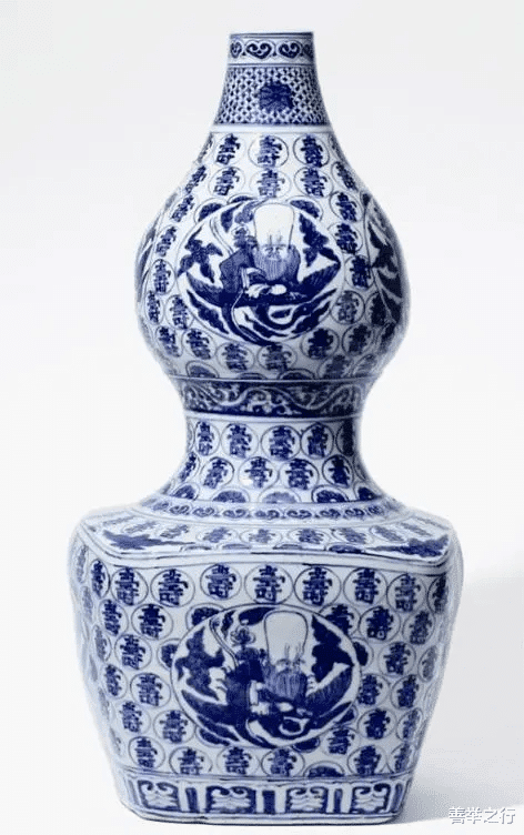 明嘉靖 青花百寿纹天圆地方式葫芦瓶