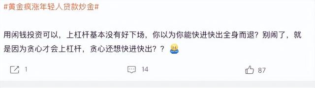 好有网友则发帖称,自己把店铺抵押贷款110万梭哈黄金,目前亏损已超4万。「现在都不敢看手机了」。