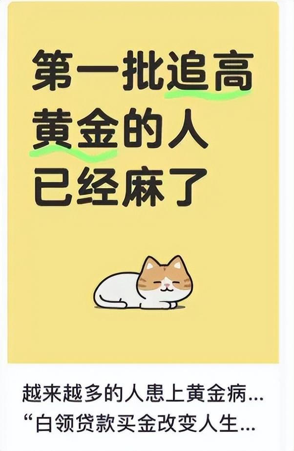 还有网友则补充:「消费贷利率3%,黄金年涨30%,要上车吗?」。而在各大群里,类似「同事贷款20万买黄金,一周净赚3万!」的内容,也是不胜枚举。