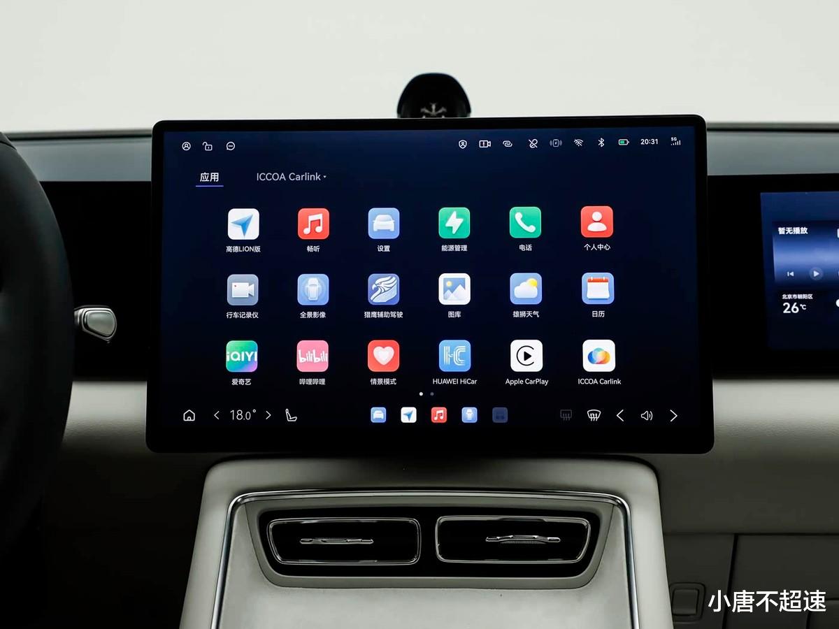 进入车内,最引人注目的是由三块屏幕组成的交互系统,包括10.25英寸液晶仪表、15.6英寸中控屏和12.3英寸副驾娱乐屏,其车机核心为高通骁龙8255芯片,并深度整合了AI语音交互功能。内饰提供暖阳米与沐光橙两种配色,高配车型还配备了21扬声器的“伯牙之音”音响系统、前排座椅加热通风按摩,以及带主动散热的50W无线充电等配置。