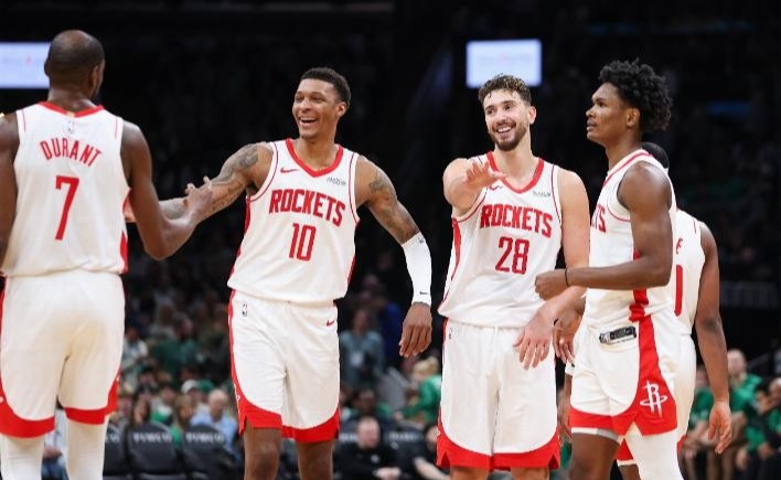 这样的大阵容与火箭的大阵容又完全不同,火箭的大阵容是亚当斯+申京+阿门+史密斯+杜兰特。