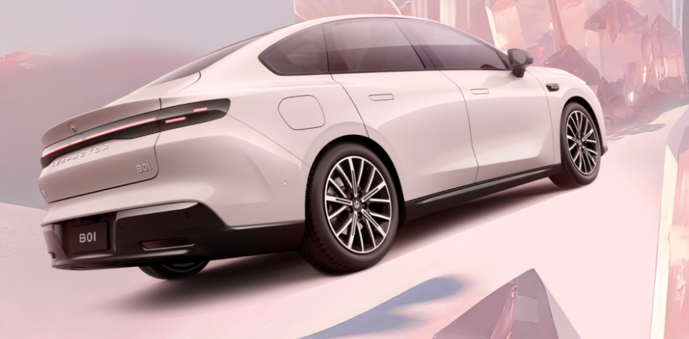 外觀外型,零跑B01是一款典型的三厢車,由於是純電車型,所以整車的風阻係數較低,而且简約感打造到位。此外,還匹配了贯串款式的燈組,全密封的車頭,躲藏式的電動門把手,贯串款式的尾燈。車身數據局部,這款零跑B01的長寬高分別爲4770/1880/1490mm,轴距是2735mm。