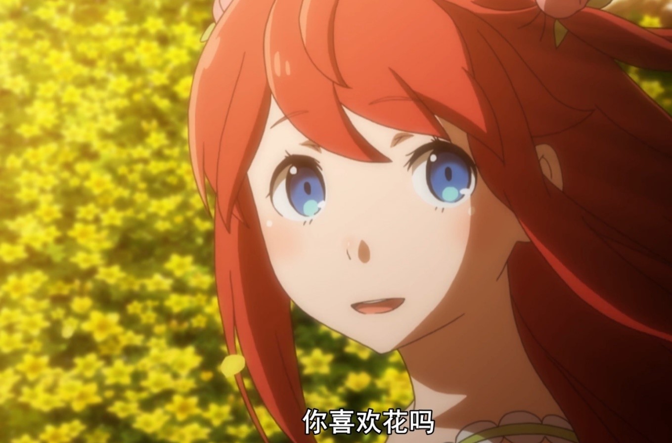 走到少女面前,顺着少女的视线向前看去,那里是一片花田,在朝霞的照射下金光灿灿。