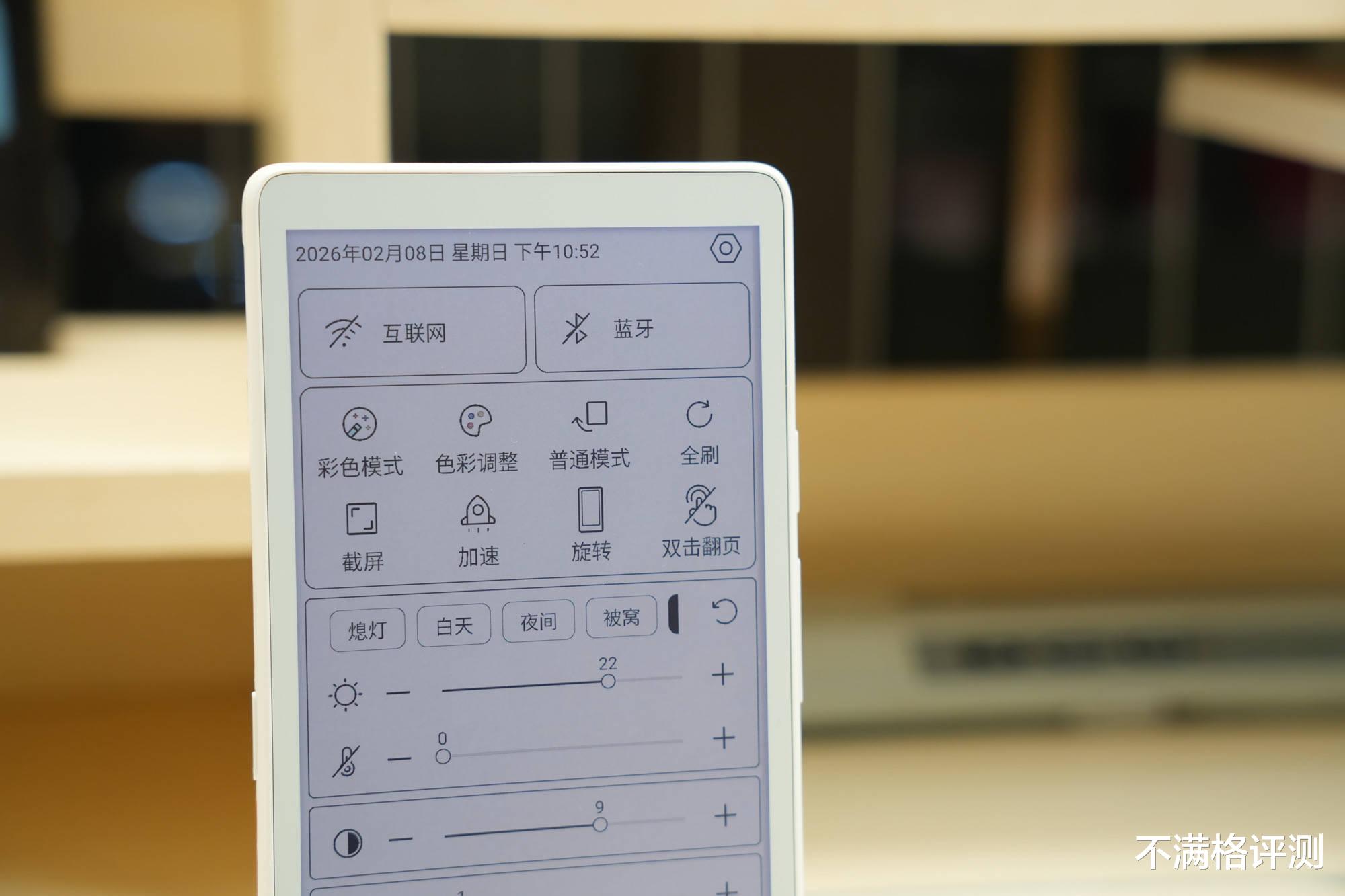为了进一步提升显示效果,其也加入了自研的MRD显示效果调教技术,不仅拥有20帧动态刷新(具备视频播放和网页滚动浏览能力),而且还支持自适应快刷去残影,256级灰阶算法,防抖补偿,以及还有自定义色彩参数调节等等功能。