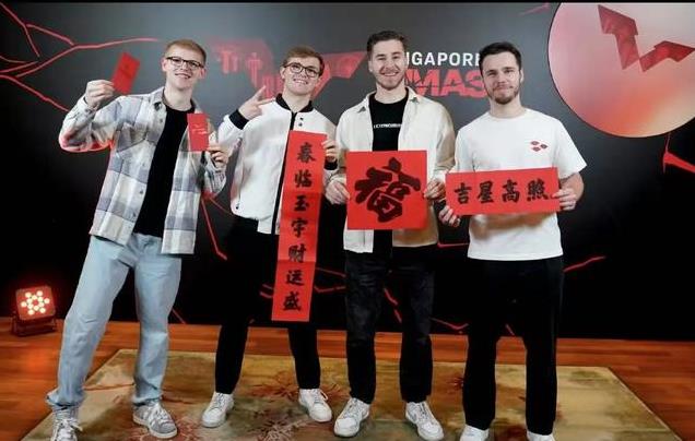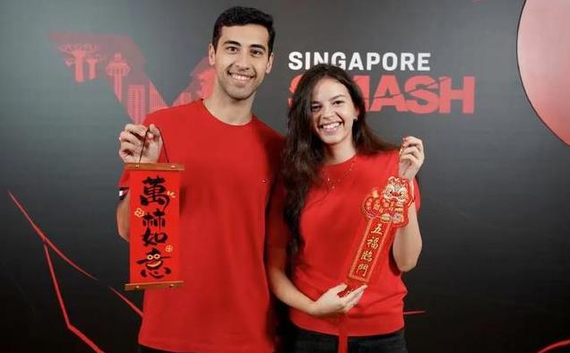 是因为正好是中国的春节期间吗?所以运动员们都拿着对联和红包拍照?