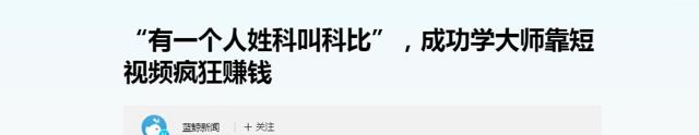 信息来源:“有一个人姓科叫科比”,成功学大师靠短视频疯狂赚钱 蓝鲸新闻 2022-9-28 11:03