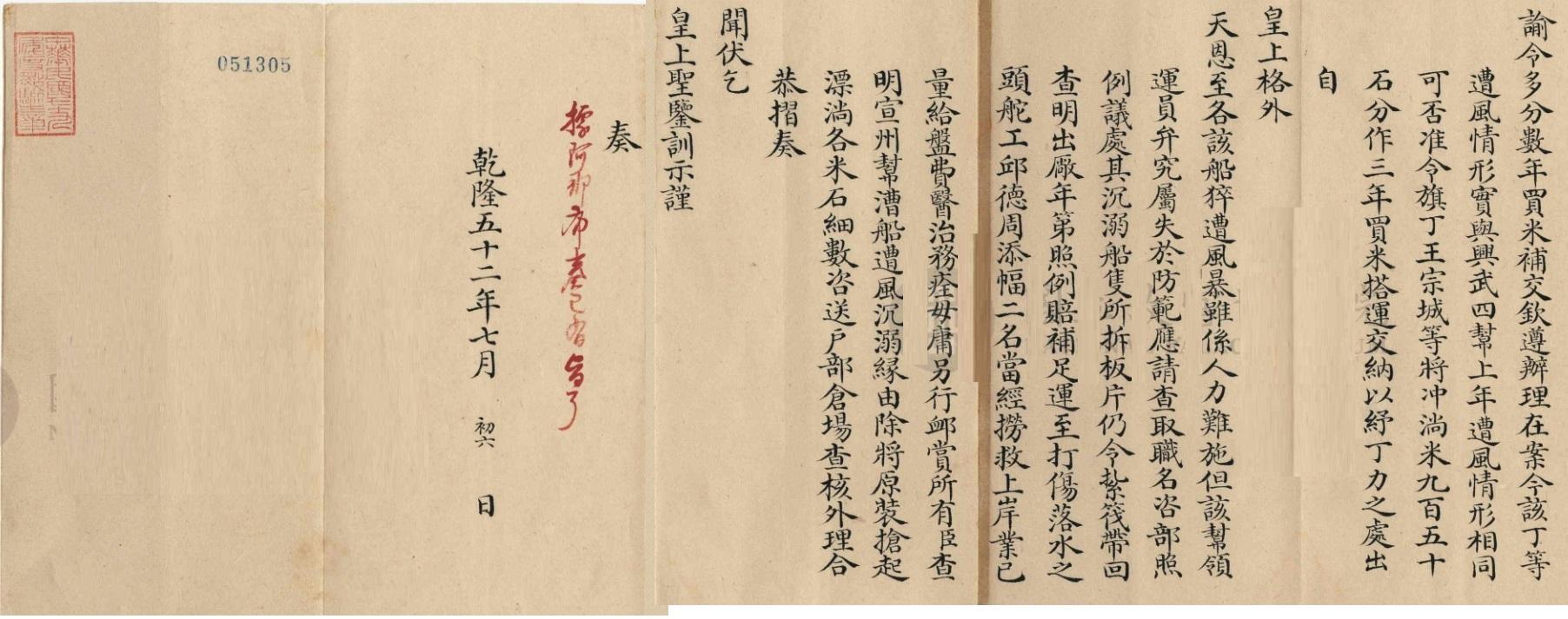 七月六日,漕运总督毓奇向乾隆皇帝汇报了“宣州卫帮在山东巨野遇难事件”的“调查报告”——《奏闻宣州帮军船六月十九日在巨野县通济闸内失风查明分别办理事恭奏》(朱批:据阿那布奏已有旨了)。据查,在此事件中宣州帮军船损失六只已无法修复,原本装载有米3945石零9斗,被水冲走950石,抢起湿米2599石,令丁分洒通帮易换干米补充。