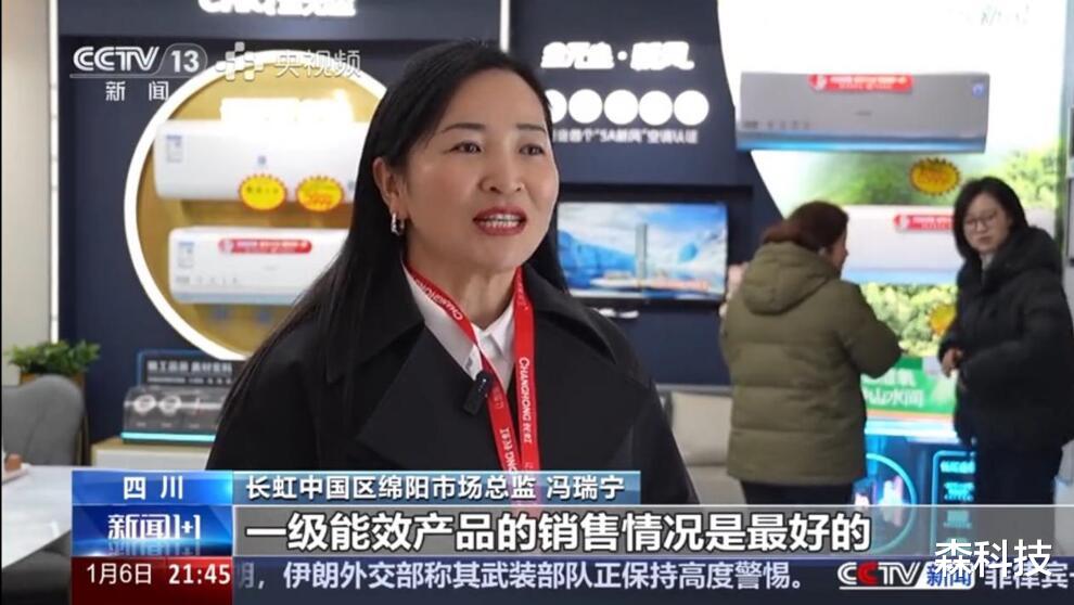 据长虹中国区绵阳市场总监冯瑞宁此前接受CCTV记者采访时透露,在“以旧换新”政策牵引下,长虹AI TV、空调、冰箱、洗衣机等全面化的AI家电不断加大绿色产品投入和研发。近期门店购买家电的消费者几乎都在咨询一级能效的空调、电视、冰箱等产品。