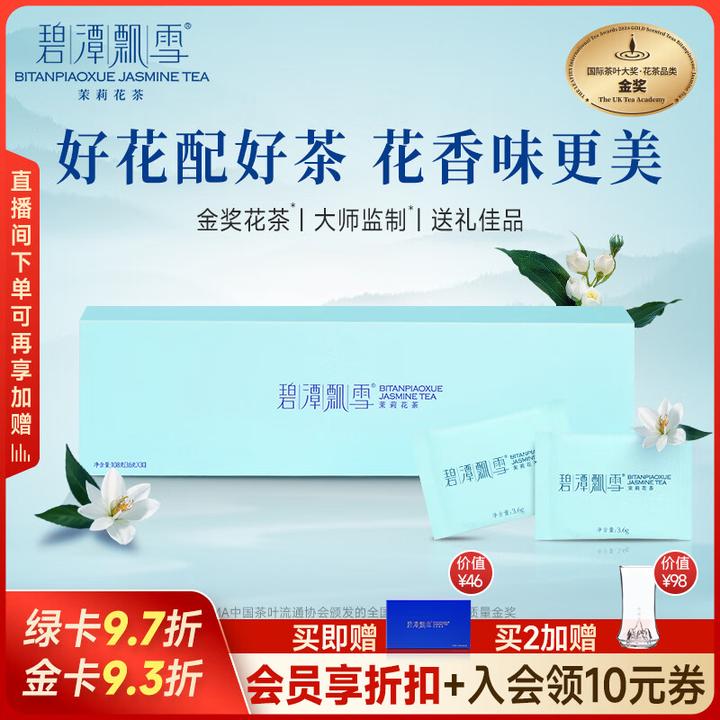 “竹叶青”推荐,他们家的碧潭飘雪,飘雪模式。色泽翠绿,香气清新,口感淡雅,回甘持久,这个花茶挺香的。就是价格有点贵。