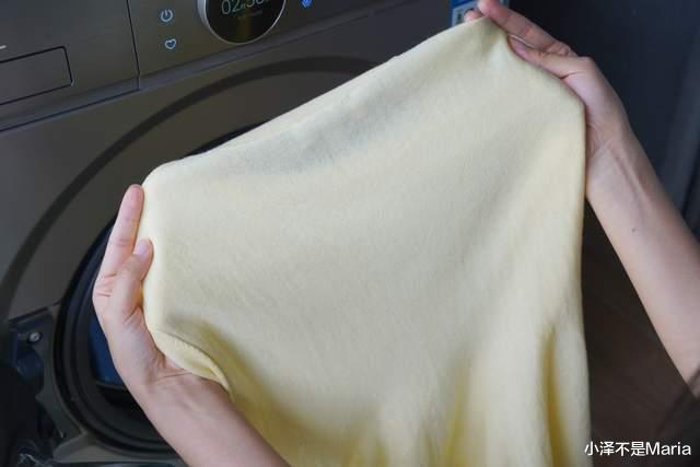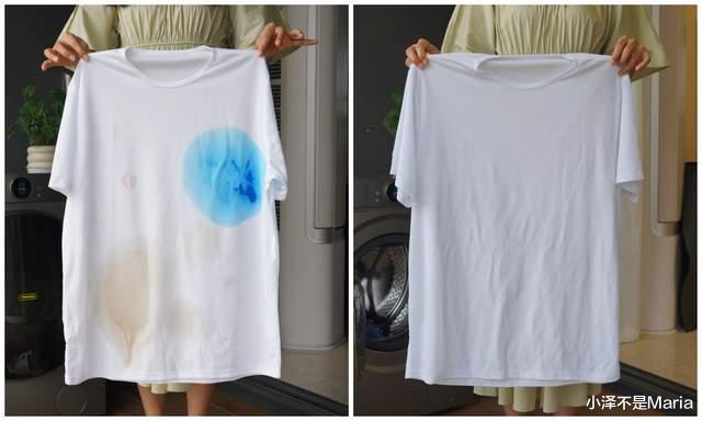 ▼一个半小时的标准清洗程序结束,之前洒在白体恤上的重度污渍完全洗干净了,要知道之前衣服上这些污渍我是完全没有预处理过的,仅仅是靠洗衣机就能有如此出的的清洗效果,表现真的很惊艳。