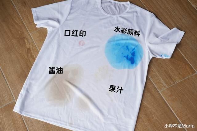 ▼咱们直接来上清洗测试,在白色纯棉体恤上洒上酱油,果汁,水彩笔颜料,口红,来模拟日常生活中常见的污渍,然后把衣服晾晒一个晚上之后,来测试TCL T7R Pro的清洗效果。