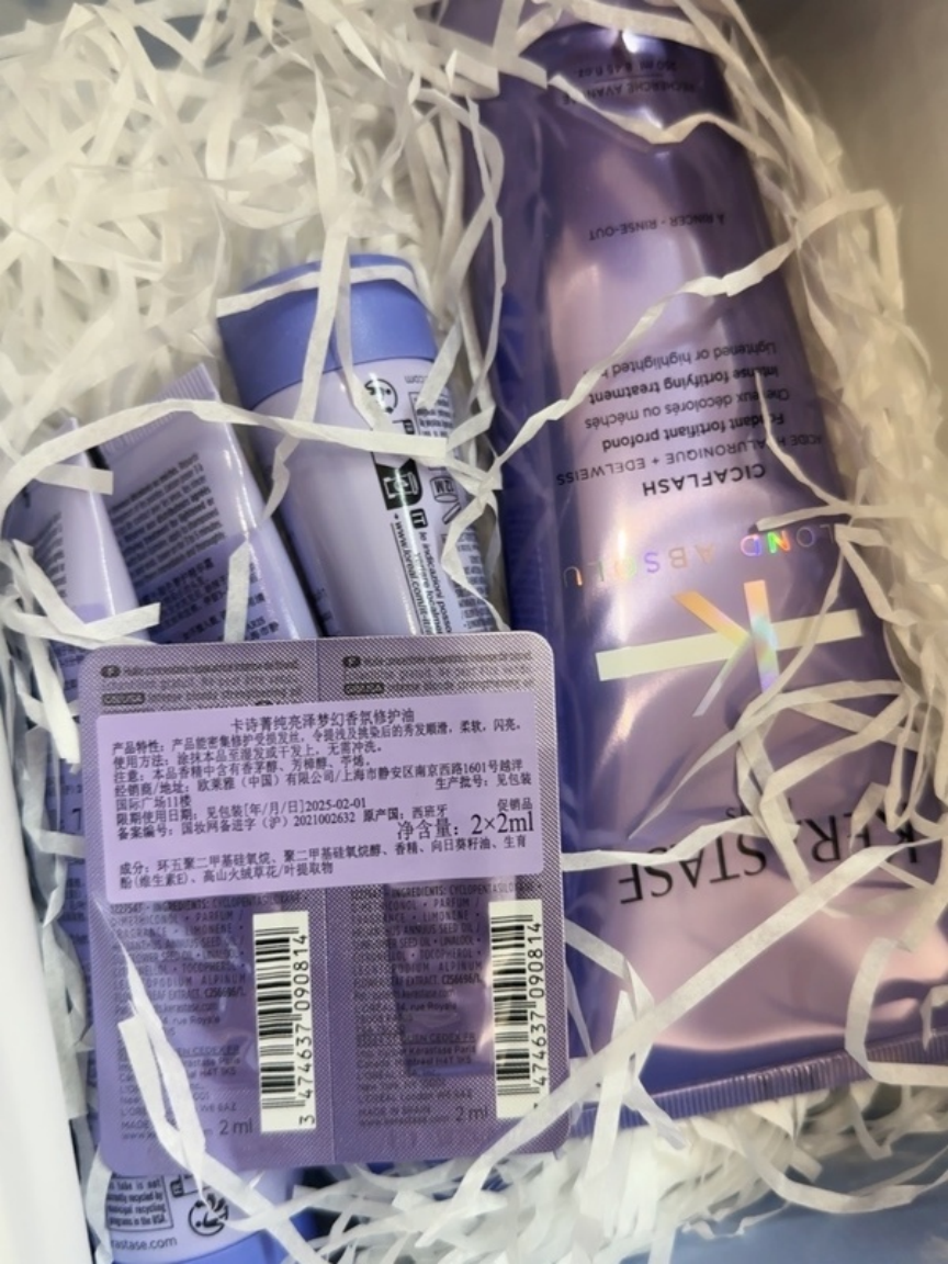 它的配方中规中矩,烫卷发后用一周,毛躁发尾顺了点,微粒包裹技术让精华能挂发丝不稀。但每次吹完还有几缕毛边,感觉核心修复成分浓度没跟上,可能每周多做一两次才有明显变化