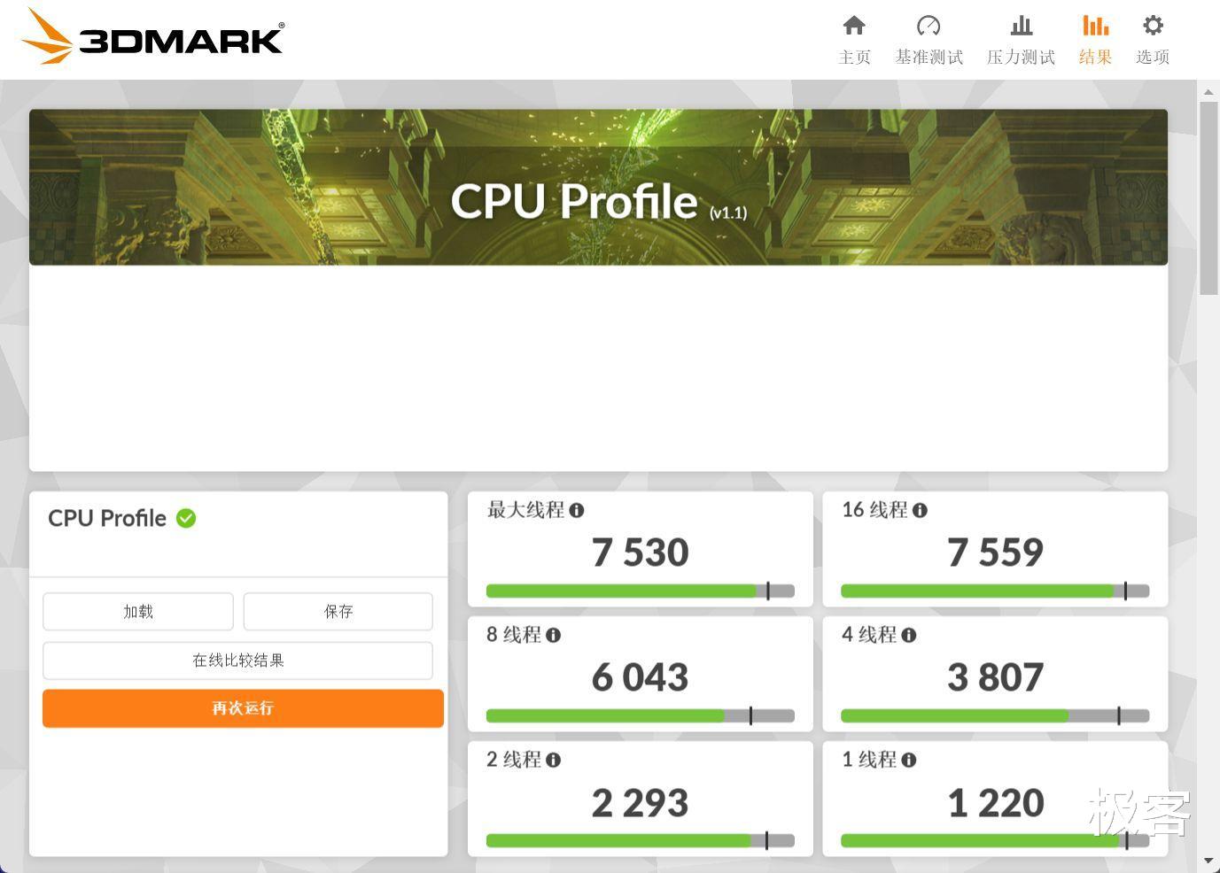 3DMARK的CPU Profile跑分中,单线程9600X领先一筹,不过差距不大。但是在多线程中,14600KF得分10748分依旧是碾压式领先9600X的7530分。