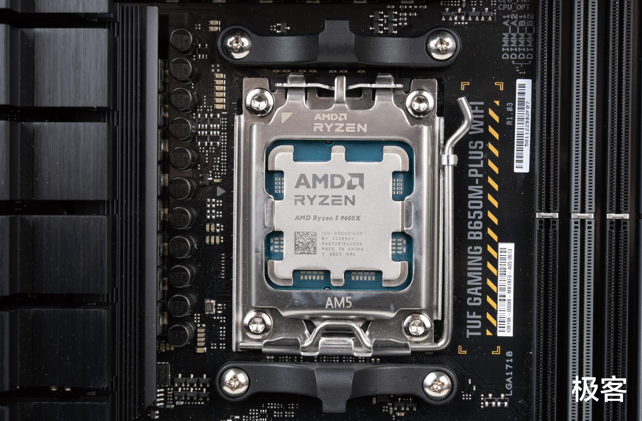 再来看AMD 9600X这款,采用的是6核芯12线程,采用的是zen5最新架构,4nm工艺制程。基础频率为3.9GHz,最高加速睿频为5.4GHz,TDP为65w,三级缓存为32M。