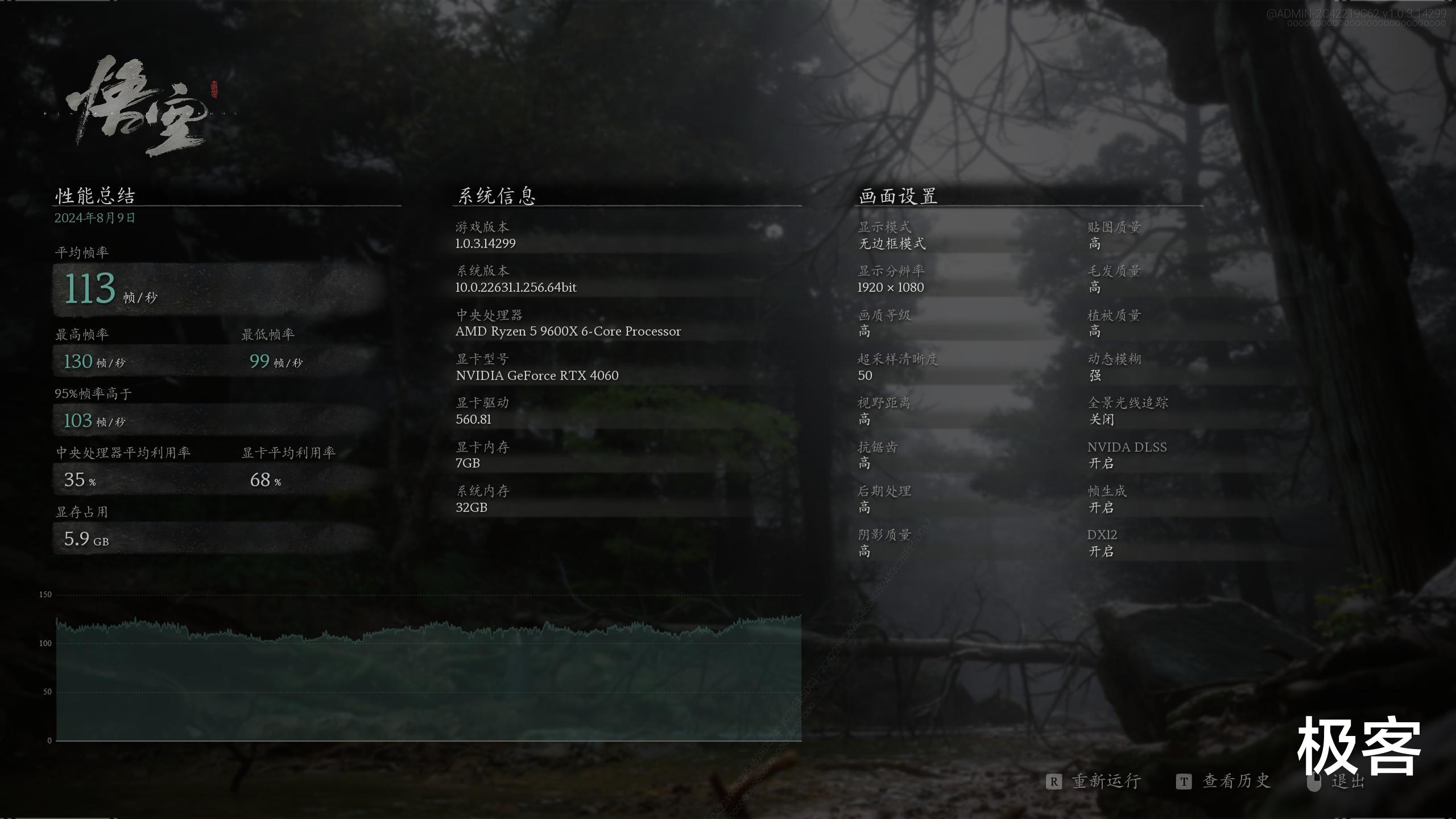 首先就拿最近火爆的《黑神话~悟空》来做下测试吧,高画质,分辨率为1080P最能考验CPU性能了,实测14600KF的得分为144帧。9600X的得分为113帧。14600KF依旧领先31帧左右。