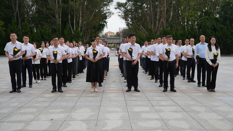 默哀毕,中山市现代职业技术学校党委副书记、校长肖学华同志缓步上前,细心整理花圈上的挽联,动作庄重沉稳,以最诚挚的方式,代表学校全体师生向革命先烈表达无限追思与崇高敬仰,彰显出学校党委对革命先烈的敬重与传承红色精神的坚定态度。