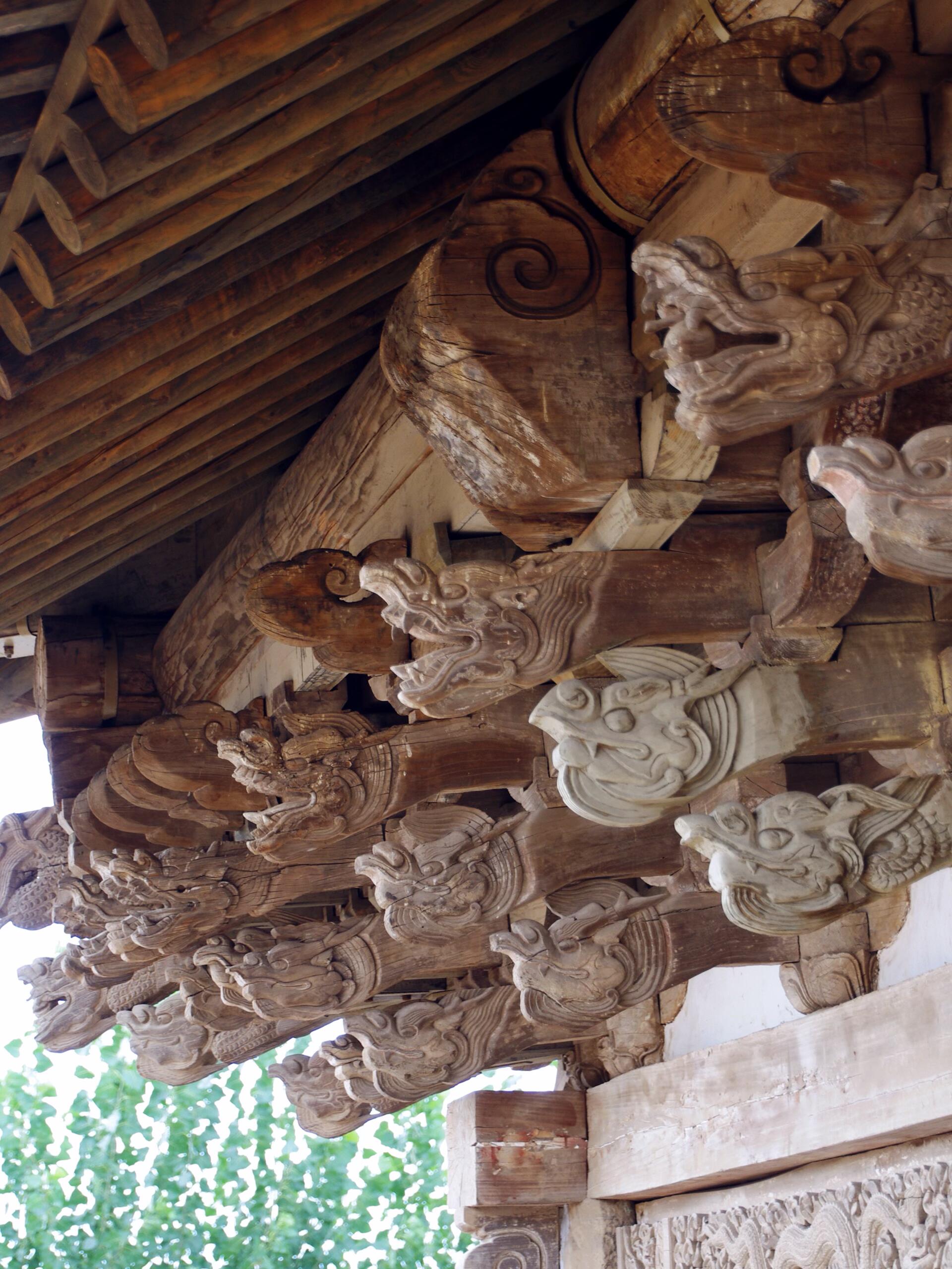 有时候会盯着转角科的龙首看很久,总觉得它的眼睛里藏着东西。阳光从殿门斜斜照进来,落在龙首上,龙的瞳孔好像会微微发亮,像是在和人对视。也许是工匠在雕刻的时候,特意把瞳孔的位置刻得深了一点,又把周围的木料磨得光滑些,才让阳光有了这样的效果。可不管是有意还是无意,这份巧思,都让这座庙多了一份温度,多了一份让人想一再靠近的欲望。