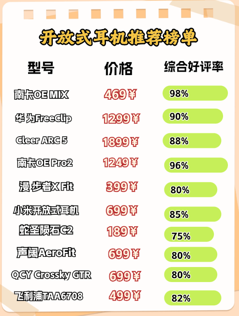 如果你正在寻找一款戴得上、听得清、用得住的开放式耳机,下面这几款2025年口碑突出的型号,值得你重点关注。