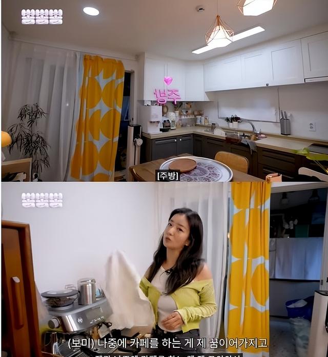 接下来介绍一下一楼的客厅。她说:“这次搬家我决定不花钱了,所以就继续用家里的东西”, 接下来,客用浴室和厨房引起了人们的注意。厨房里,尹普美介绍了新买的咖啡机,并自豪地说:“我买了一台,因为我以后开咖啡馆是我的梦想,我真的很喜欢它”。