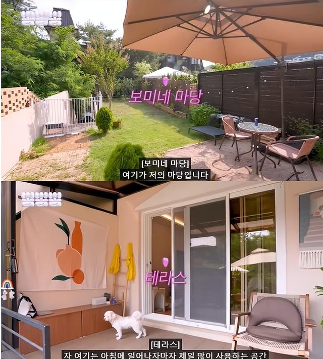 另外,院子里还有一个菜园,种着生菜和芝麻叶。不仅如此,尹普美还说:“我坐在这里喝咖啡,当我打开门时,小狗们在玩耍!” ,一个可以做到这一点的空间,”,普美通过介绍露台来吸引人们的注意。这是我早上醒来后使用最多的空间,我坐在椅子上,喝咖啡,看着小狗玩耍。