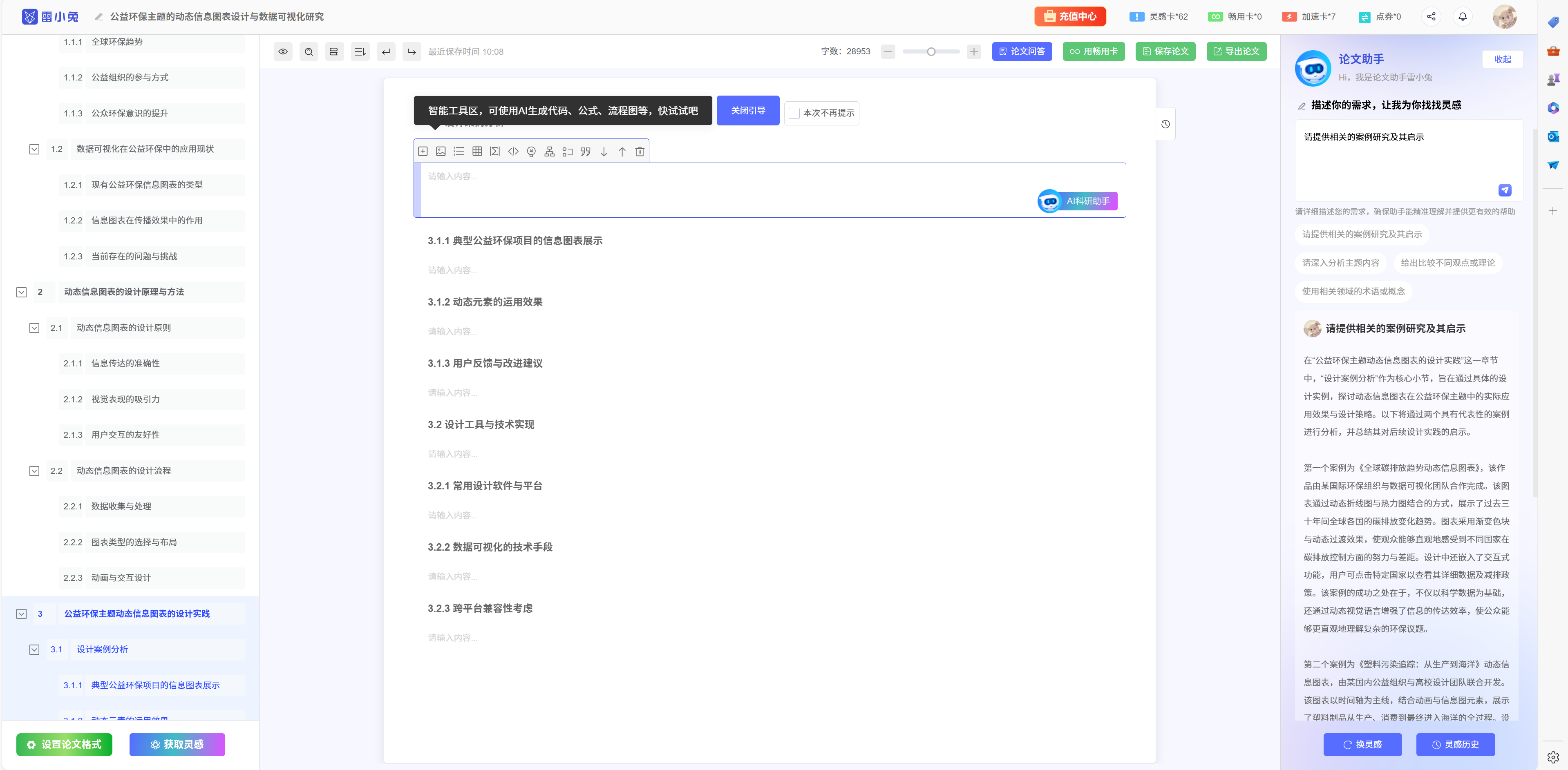 集成了论文写作各阶段需要的工具集合,无需跳转其他网站,无需付费购买工具破解版,全程干净无烦人广告。包含功能有:表格与图形制作(包括各类图表、流程图等)、数学公式编辑、代码语法高亮、全文语言检查、文字优化与去重、文章关键点提炼及内容总结等,从素材整理到最后打磨,一个平台全搞定。