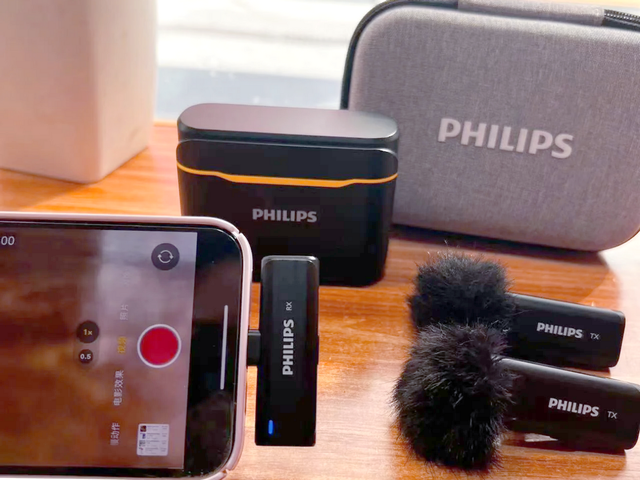 飞利浦这款在续航和易用性上表现突出。单麦可录12小时,搭配充电仓总续航达34小时,非常适合录课、长直播或外景拍摄。接收端带OLED显示屏,音量、电量状态一目了然,操控更直观。它采用24Bit/48kHz音频采样,信噪比80dB以上,内置DSP降噪处理。声音整体饱满,背景噪音控制得当。Type-C与Lightning接口双版本均支持边录边充。唯一不足是部分安卓机需开启OTG后才能识别,适配性略有限。