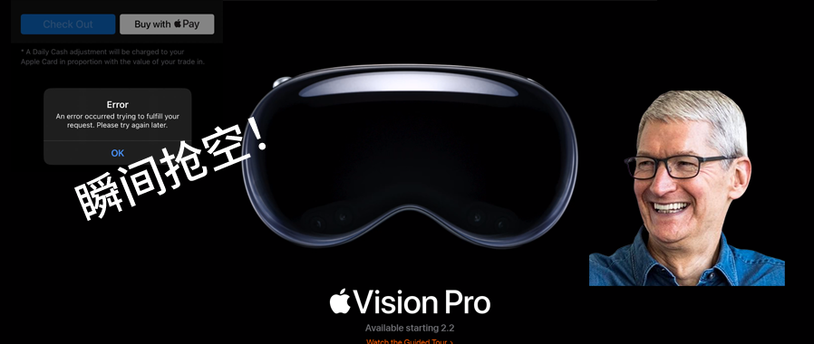 美国时间2024年1月19日,苹果首款MR头显设备Vision Pro开启预订,短短半小时,就有部分区域出现售罄的情况,场面可谓火爆。