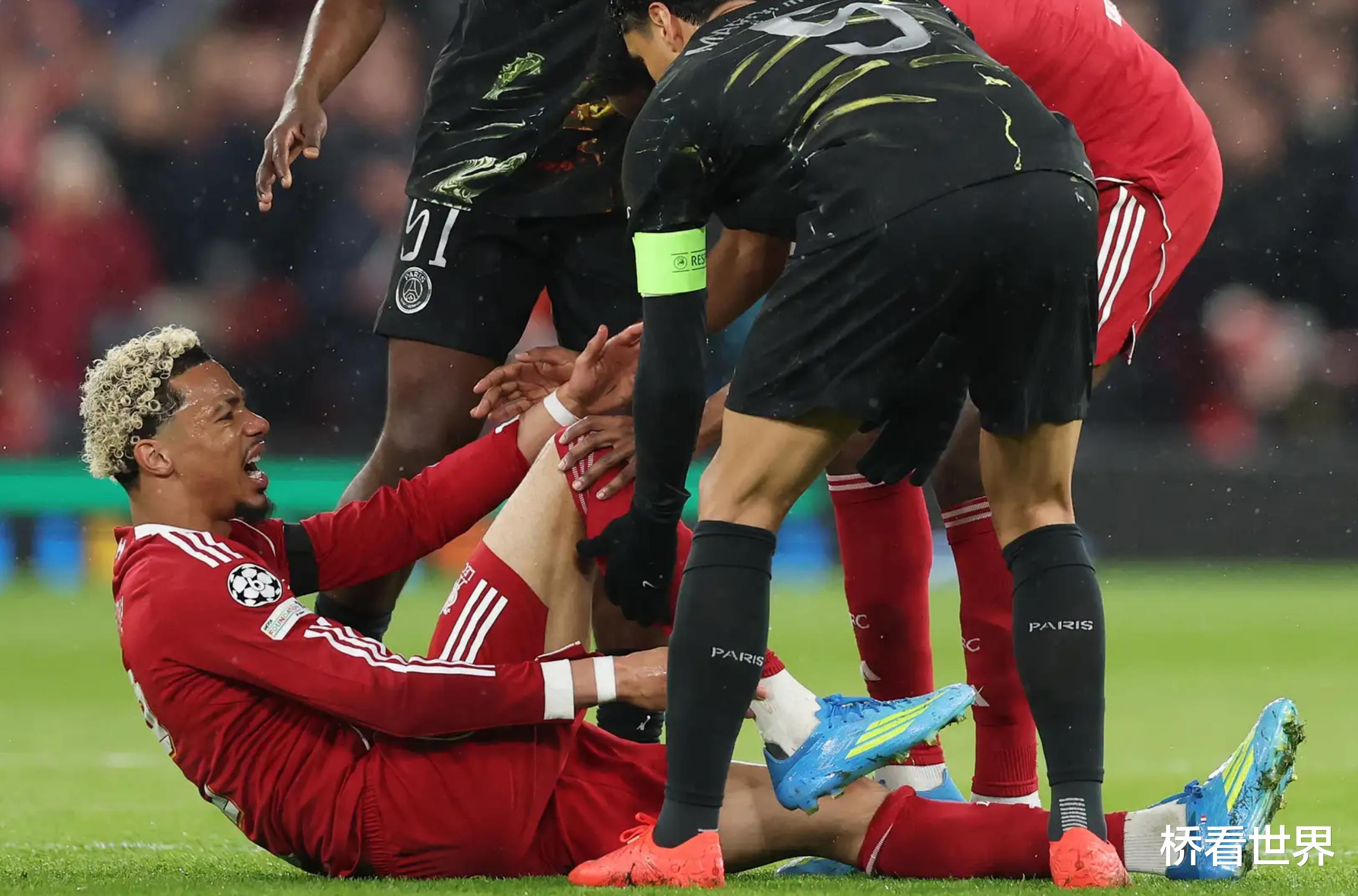 埃基蒂克在一次并无身体接触的对抗中倒地。他看起来捂着脚踝部位,没有尝试起身。双方球员立刻围了上来,其中不少大巴黎球员还是他的法国国家队队友。一旦需要长期缺阵,对利物浦和埃基蒂克本人都将是巨大打击 —— 只要身体健康,他基本会入选法国队世界杯大名单。