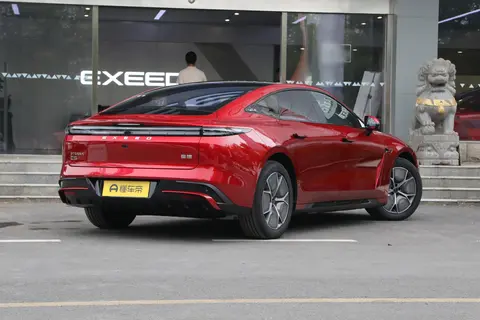 车身侧面,溜背轿跑线条从车头延伸至车尾,勾勒出优雅姿态,配合隐藏式车门把手与大尺寸双色低风阻轮毂,进一步降低风阻的同时,强化了运动氛围。车身颜色提供极光紫、玄武黑、银雀灰等多种选择,无论是偏爱沉稳还是活泼风格,都能找到适配方案。车尾的贯穿式细长尾灯采用双层光源设计,夜间点亮后视觉效果醒目;两档可调电动升降尾翼兼具实用性与美观性,高速行驶时可提供额外下压力,提升车身稳定性,熏黑后包围与黑色扩散器则进一步烘托运动氛围。