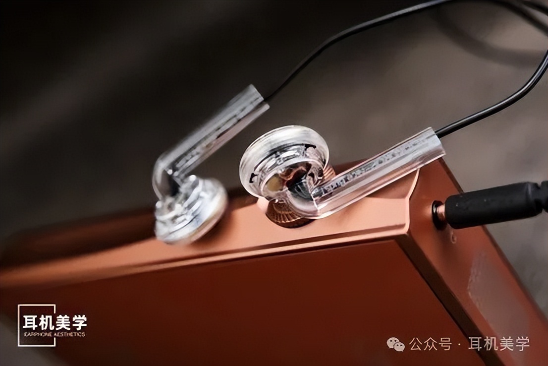 外观上 Nice Buds 走的是很讨喜的“通透复古工业风”:半透明腔体配细长导管,内部结构若隐若现,圆形后腔配开孔设计,器材感和辨识度都很足。导管上有型号标识,整体线条硬朗,不像廉价小玩具,反而有点“复古科技感”。