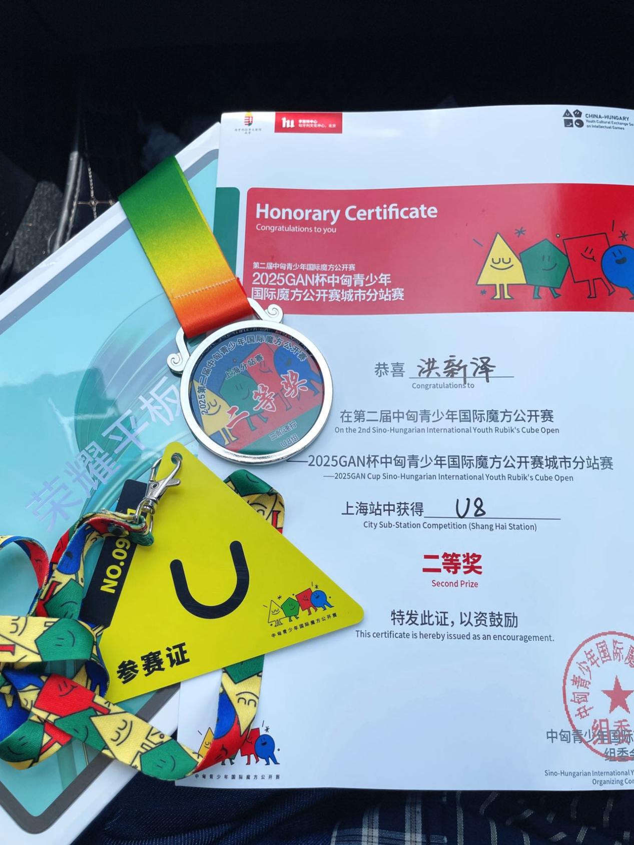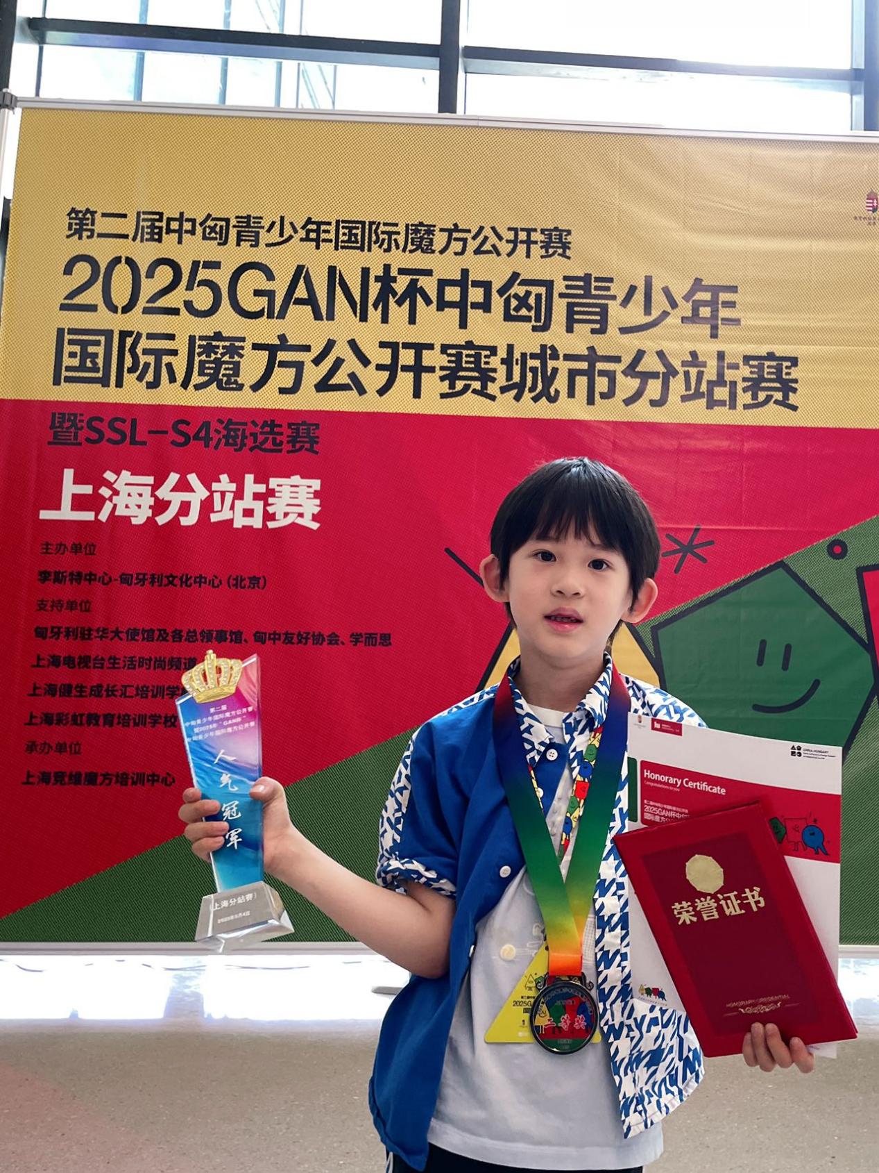 距离7岁生日还有15天,上海男孩洪新泽用沉甸甸的奖杯和奖牌提前为自己送上成长贺礼——在5月4日举行的2025年GAN杯中匈青少年国际魔方公开赛上海分站赛上,这名一年级小学生以惊人手速和稳定发挥,一举斩获"人气冠军"及U8组个人季军。更令人惊叹的是,他魔方从一分钟还原到sub30内,仅用了短短一个月。