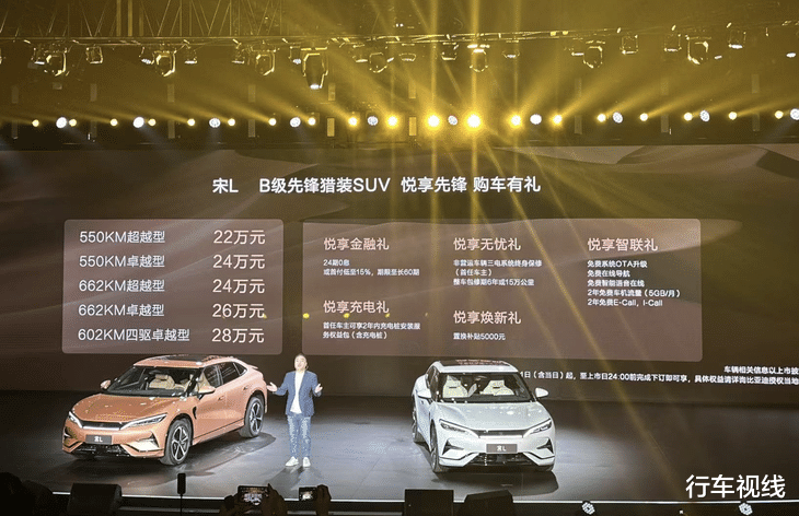 10月31日,行车视线从比亚迪官方获悉,旗下宋L正式预售,新车共计推出5款车型,预售价格区间为22-28万元。宋L基于e平台3.0打造,将搭载CTB电池车身一体化技术、智能电四驱、DiPilot智能驾驶辅助、云辇C系统等。