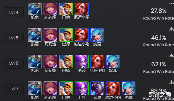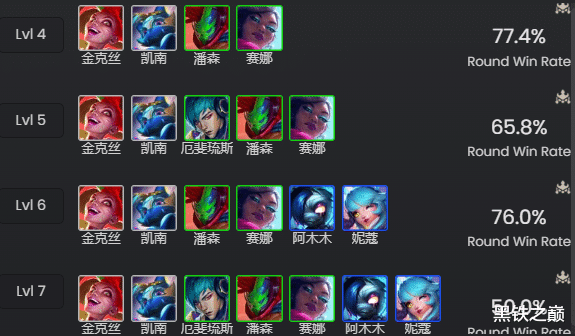 阵容构成均来自云顶大数据MetaTFT