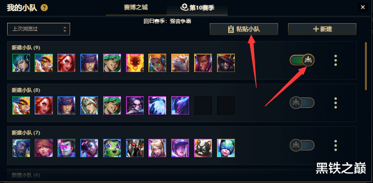(2)点选第10赛季,点击粘贴小队
