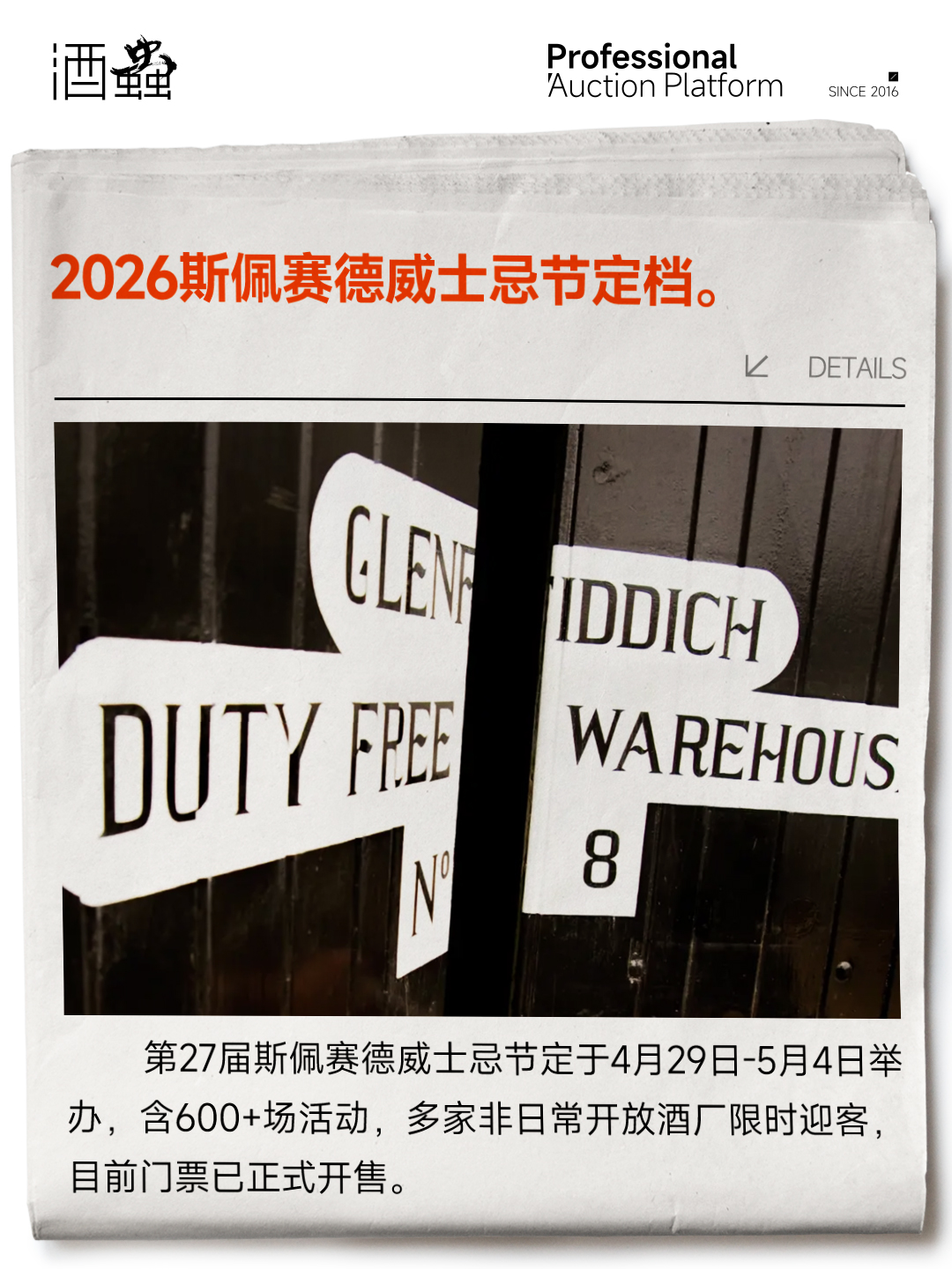 第27届斯佩赛德威士忌节定于4月29日-5月4日举办,含600+场活动,多家非日常开放酒厂限时迎客,目前门票已正式开售。