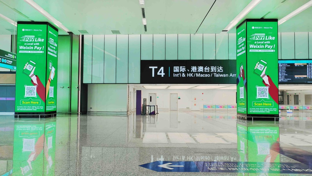 两根7米高包柱灯箱采用四面设计,无论旅客从哪个方向进入,视线均被捕获。顶天立地的柱体在开阔空间中形成垂直视觉高地,“扑面而来”的感受无法回避。
