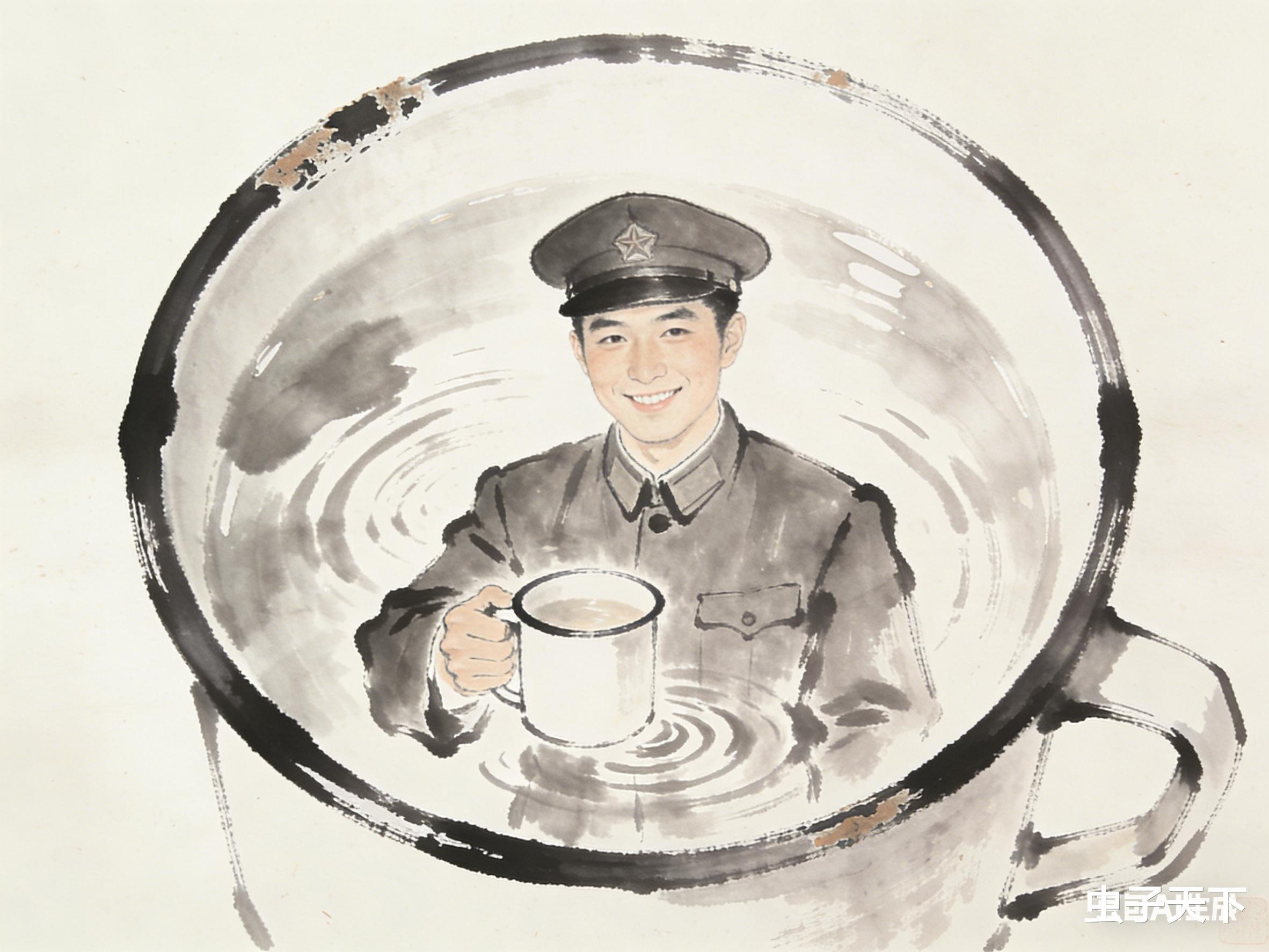 可月亮边上,分明站着个穿军装的年轻人,瘦高个,浓眉大眼,正端着那个茶缸,冲谁笑。