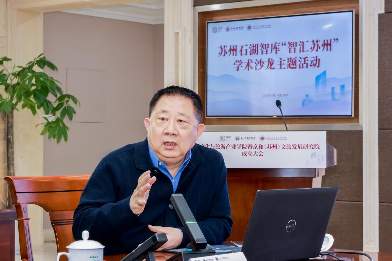 同期,还举办了“智汇苏州”学术沙龙2026年第一期活动。京和文旅发展研究院范周教授、上海交通大学刘士林教授分别以《智能经济与文旅融合未来》、《旅游新质生产力与产业集群发展》为题作主旨报告,为苏州文旅高质量发展建言献策。