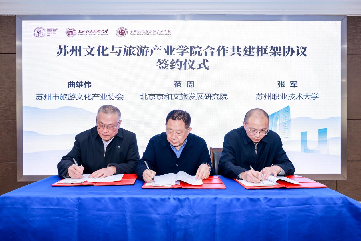 作为牵头单位,苏州职业技术大学依托旅游管理专业20余年积淀及相关研究平台,持续输送文旅人才。学校相关负责人表示,产业学院的成立是学校扎根苏州、服务十大板块发展战略的重要落地举措,未来将立足苏州全域,精准服务文旅产业升级需求,打造文旅产业“人才蓄水池”、“创新策源地”和“文化新名片”,为苏州文化强市建设和世界级旅游目的地打造贡献职教力量。 (撰稿:张磊玲、戴昕 图片:于莉)