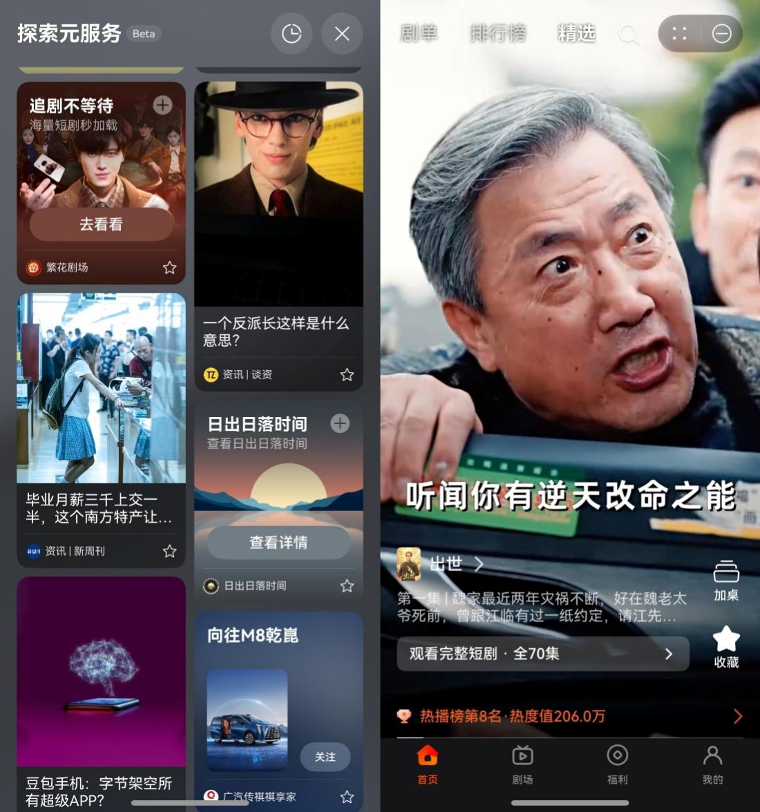 午饭后的半小时,是打工人宝贵的“回血”时间,我进入「探索元服务」里刷到了“繁花剧场”短剧卡片,绝对是快乐“杀时间”的神器。同样无需下载安装,即点即看,看完即走。