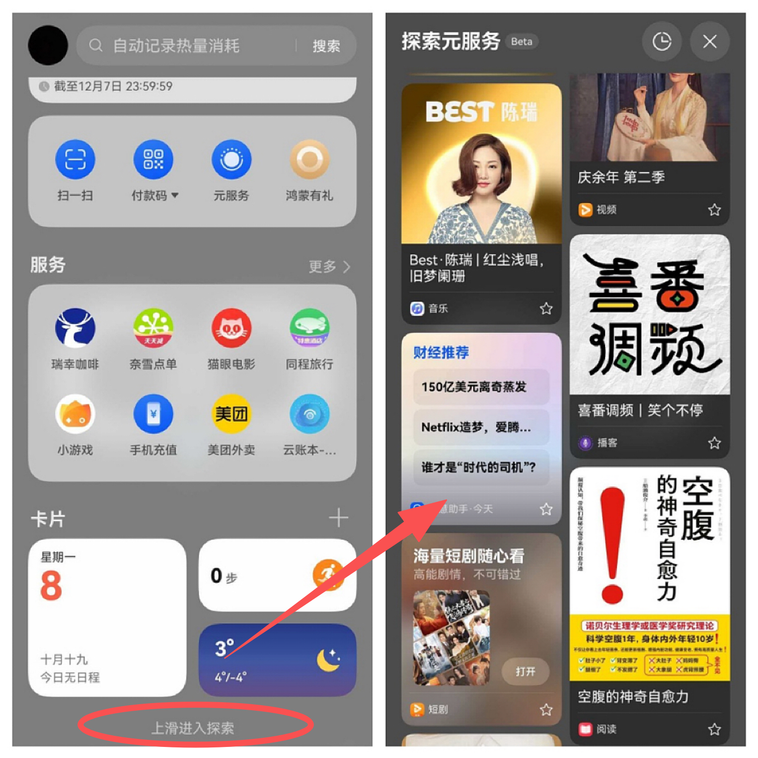 我看来,真正的智能不该只是炫技,而应该是更懂你、更安静地融入日常,在你几乎察觉不到时,已将生活中的琐碎悄然理顺。就像我把华为手机升级到鸿蒙操作系统 6后,在负一屏遇见的「探索元服务」,它没有张扬的宣传,却用“润物细无声”的方式,让我真切体会什么叫“世界与我相关”。