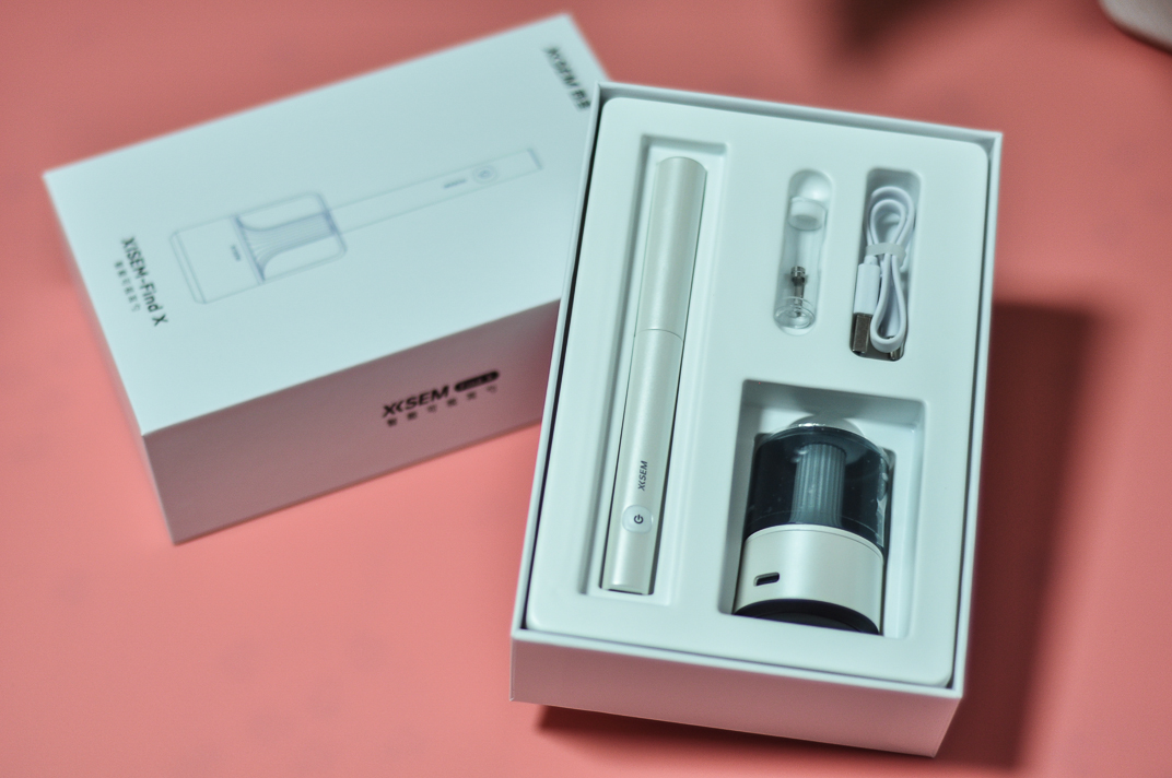 作为专注智能健康设备的品牌,西圣在视听和个人护理领域一直以技术扎实著称。之前也出过一款耳勺,这款 Find X 耳勺在原有技术上进一步更新,还没开箱就让人充满期待。包装盒采用简约的白色设计,正面印着产品图和 “智能可视” 的醒目标识,背面清晰的标注了产品参数,1500 万像素、UVC紫外线消毒等核心卖点,让产品优势一目了然。打开盒子,耳勺主体、消毒底座盒、充电线等配件被牢靠的固定在卡槽中,打开消毒底座,里面均布摆放硅胶耳勺头,可根据需要进行更换。