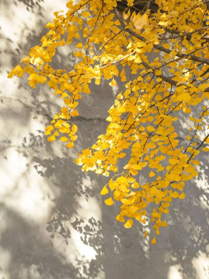 透过银杏枝丫,能望见寺庙的翘角飞檐;