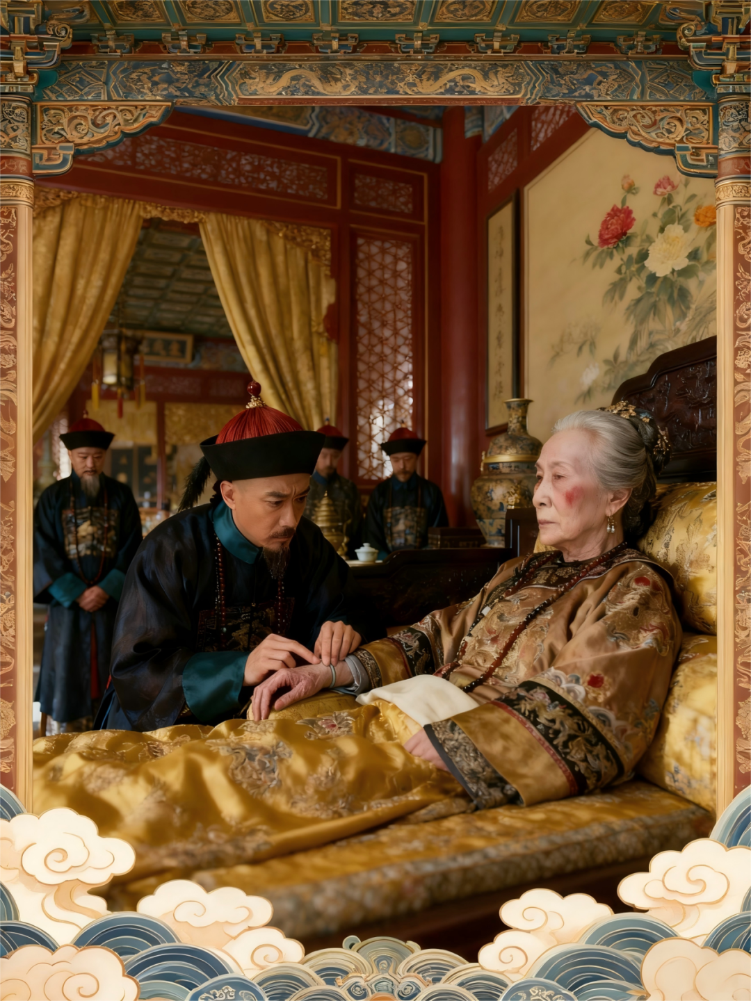 据清宫档案记载,崇庆皇太后中年时期曾患上一种罕见的皮肤病,症状为面部出现蝶形红斑,伴有发热和关节疼痛,现代医学专家推测很可能就是系统性红斑狼疮,古称"红蝴蝶疮"。