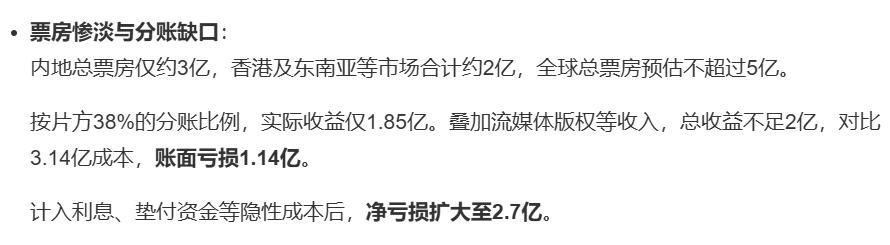 所以,光是这四部影片,各自赔的数额林林总总加在一起,就差不多达到8个亿了。