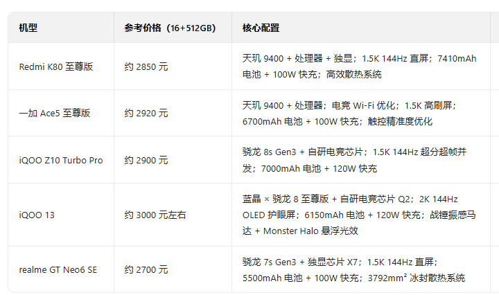 预算稍低求实用:选realme GT Neo6 SE,价格亲民,散热和充电表现亮眼,足以满足主流游戏需求,适合预算有限、无极致性能追求的普通玩家。
