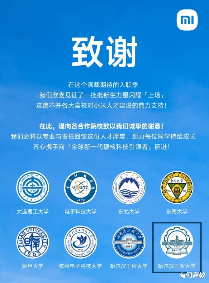 9 月 1 日,小米集团发布的海内外高校致谢名单中,哈尔滨工业大学继去年后再度上榜。这份持续的认可背后,是哈工大毕业生在科技产业领域的过硬口碑。作为深耕智能硬件与智能汽车领域的科技企业,小米对自动驾驶、智能控制等技术人才的迫切需求,与哈工大在工科领域的深厚积淀形成了精准对接。