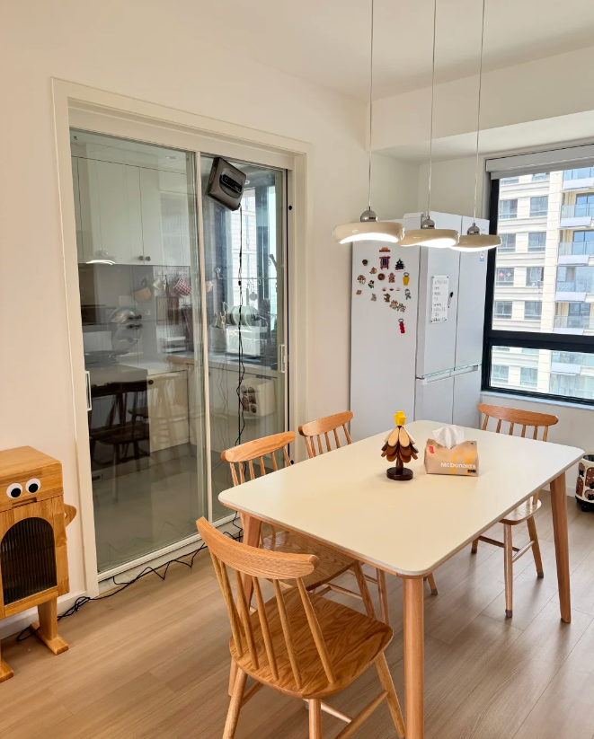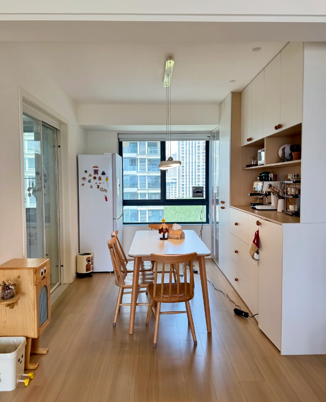 仅花 11 万硬装预算,便将奶油原木风的温柔与治愈,揉进了家里的每一个角落,客餐厅一体的通透格局搭配小巧实用的厨房,让日常起居满是舒适与惬意。